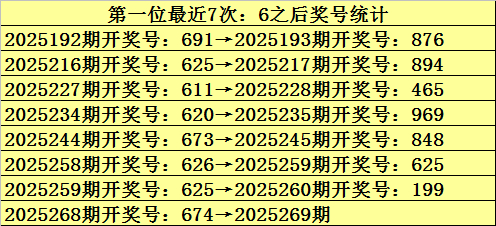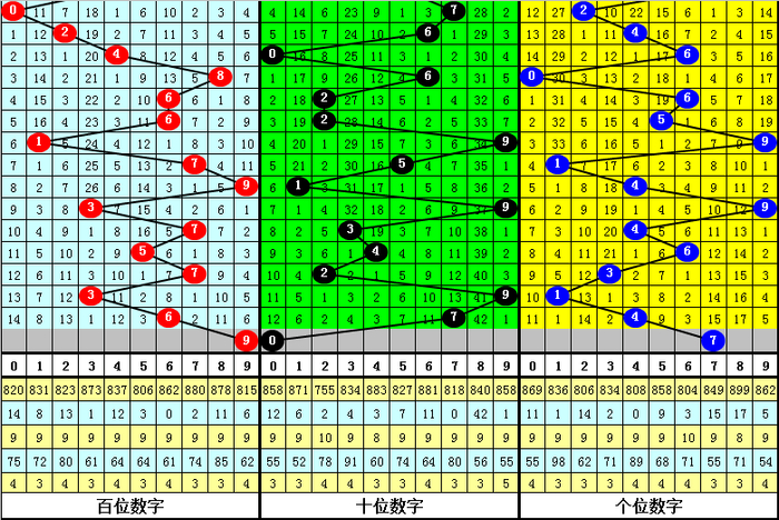 第一位冷码判断:上期奖号为6,遗漏值为8期,目前该位最冷号码为0,遗漏值为14期,本期注意冷码0解冻。
