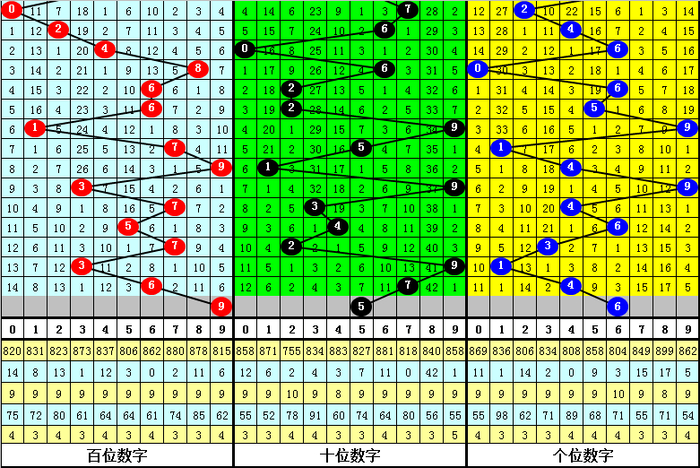 百位:上期奖号为:6,该位大号近期表现活跃,上期上升了3个点位,本期预计该位上升,参考号码9。